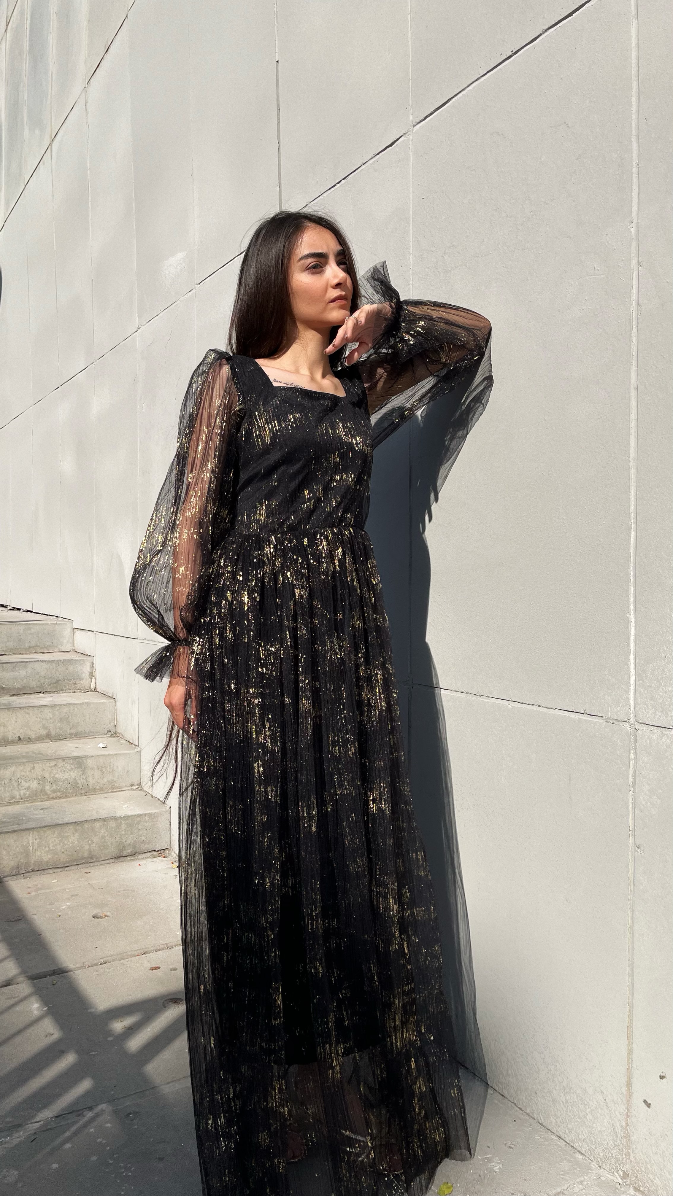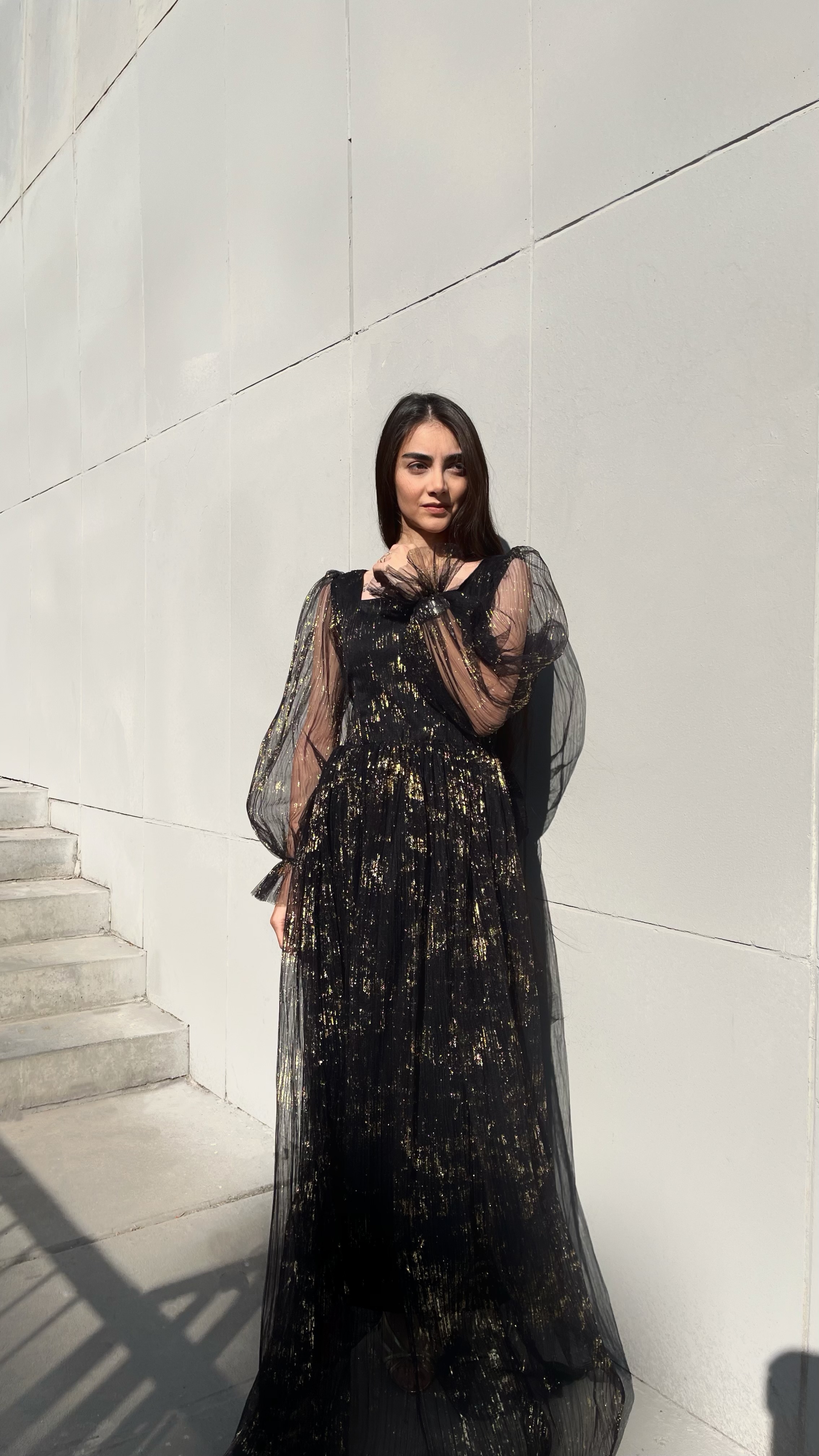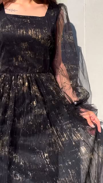 طراحی خاص با پارچه حریر درخشان، آستینهای پفدار و برش ظریف مناسب برای مراسم شب، تولد و مهمانیهای رسمی. آستر داخلی سبک و راحت.