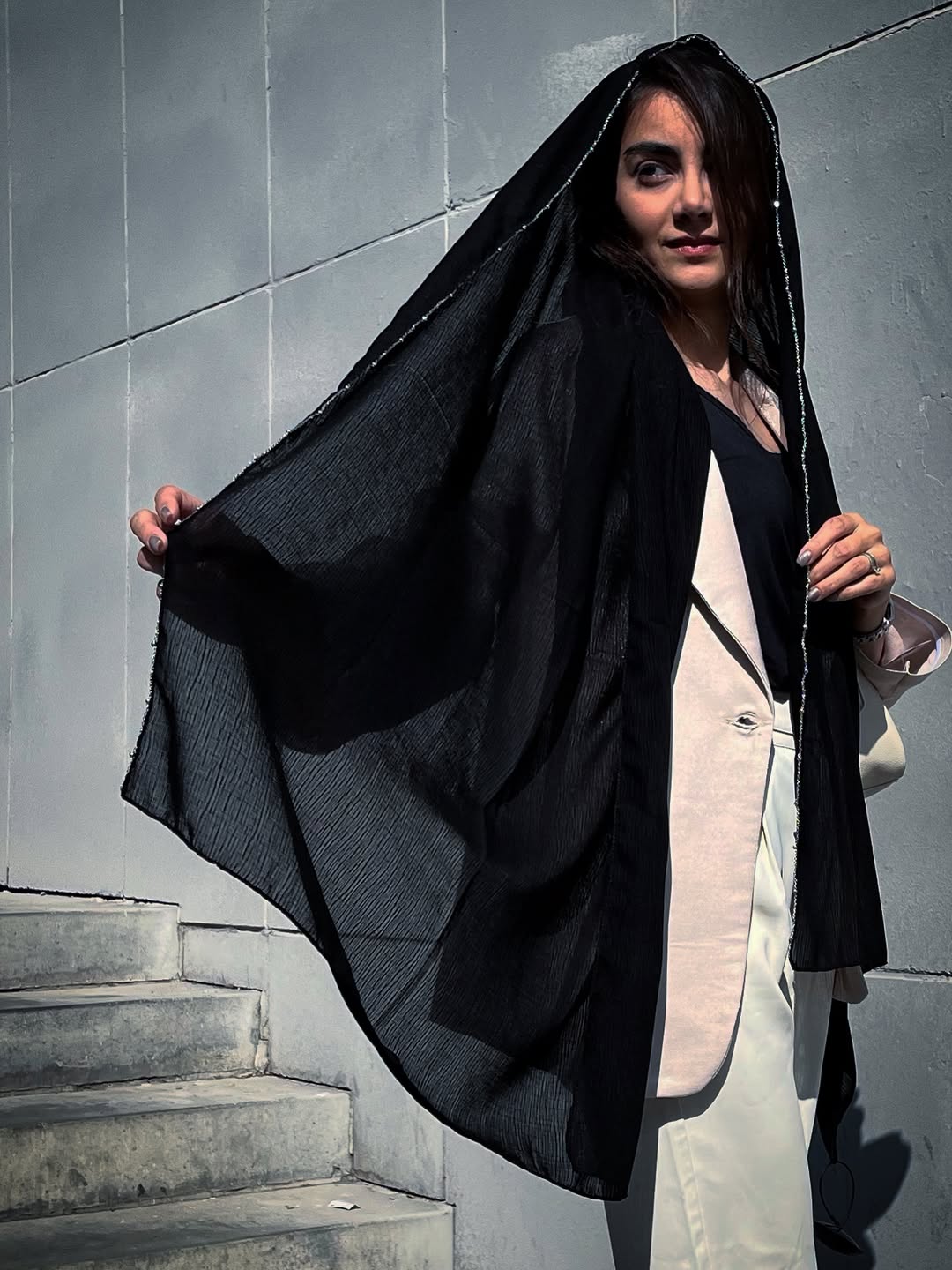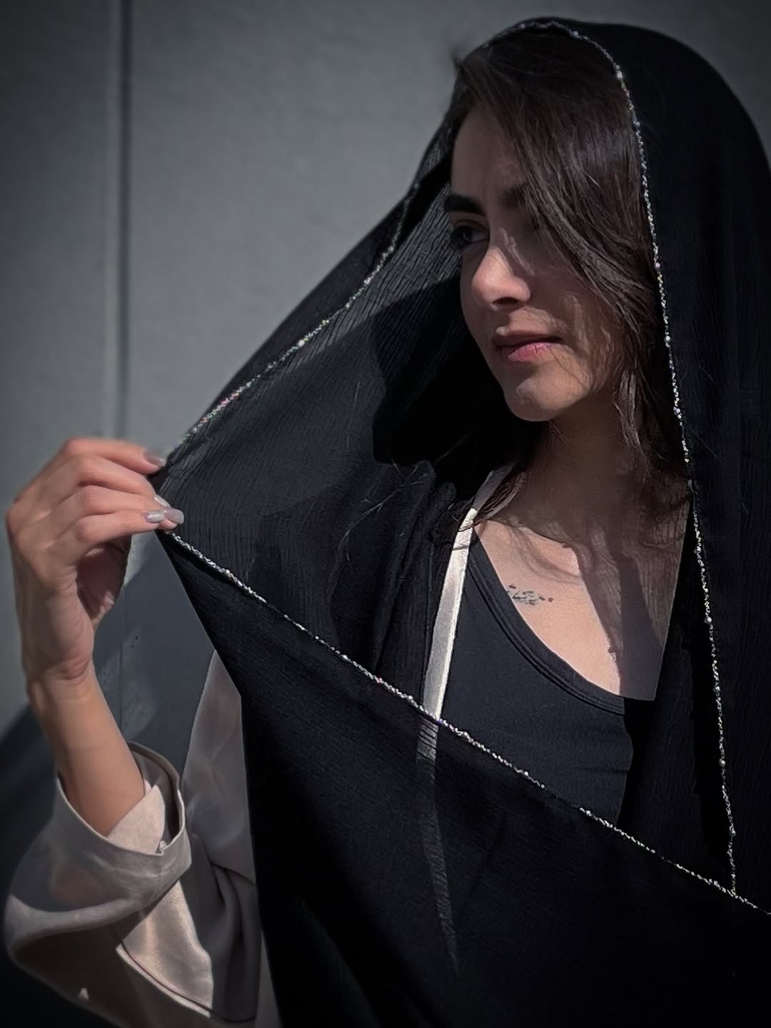 رنگ : نگین : سفید و مشکی شال:مشکی