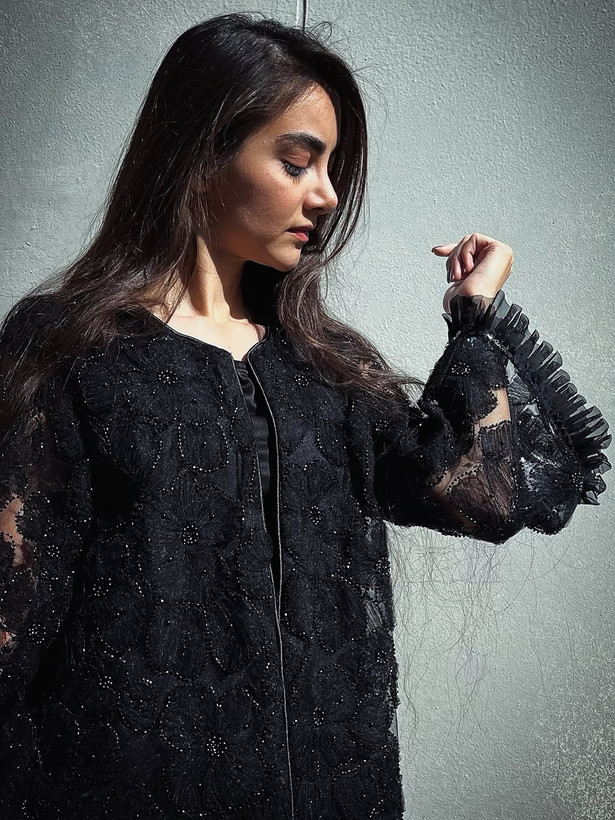 پمانتو کتی با طرح گل برجسته دوختهشده از پارچه ترک گل دوزی شده سبک، با بافت ظریف و درخشان. طراحی آزاد و خوشفرم این کت باعث میشه برای هر موقعیتی مناسب باشه — از قرار روزمره تا استایل رسمیتر.